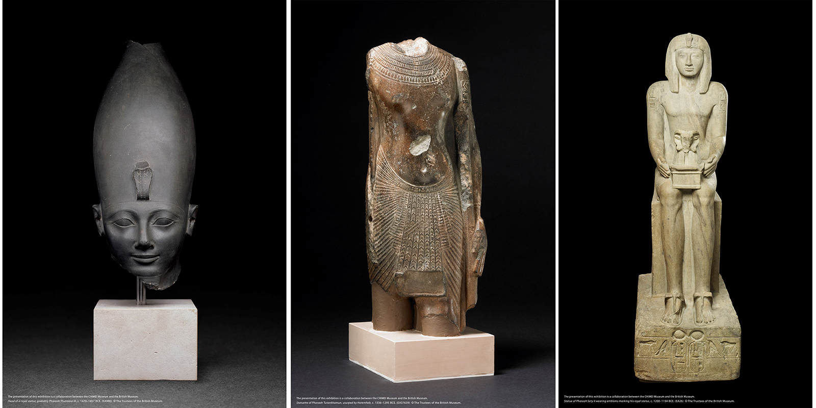 本次大英博物館特別精選橫跨 近三千年歷史的珍藏,從古埃及第三王朝至羅馬統治時期,涵蓋多達 56 位法老的統治年代,包括拉美西斯二世、圖坦卡門、女法老哈特謝普蘇特、圖特摩斯三世與亞歷山大大帝等。