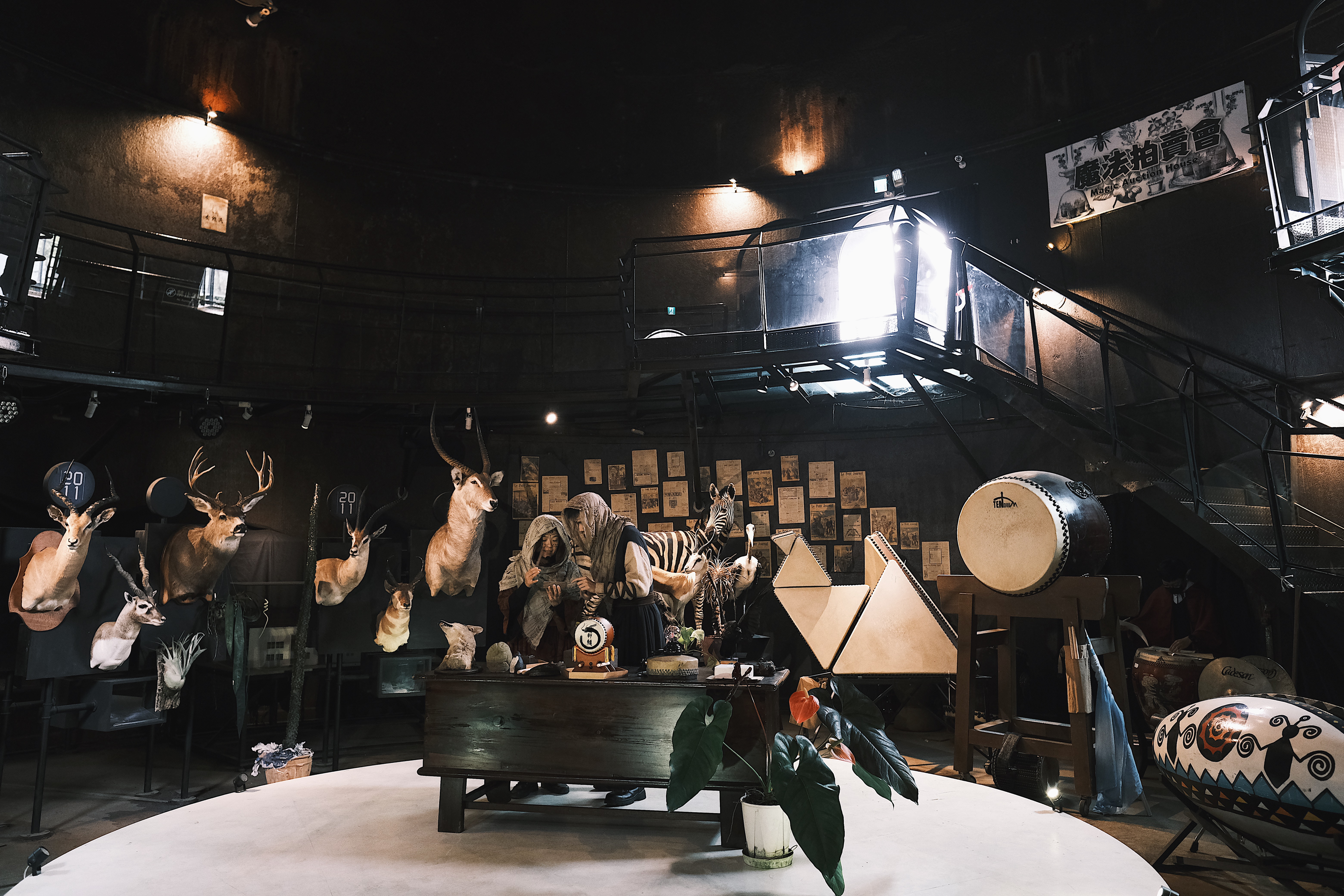 據十鼓文創表示,本次創作運用了共405件仿真獸骨,包含豺狼、牛、羊、駱駝、鱷魚、狐狸等多種動物部位。每一件骨骼皆與祭典重組,成為故事的一部分,角落處亦可見象徵史前時代的陶製湯鍋、陶甕等遠古人類生活軌跡。