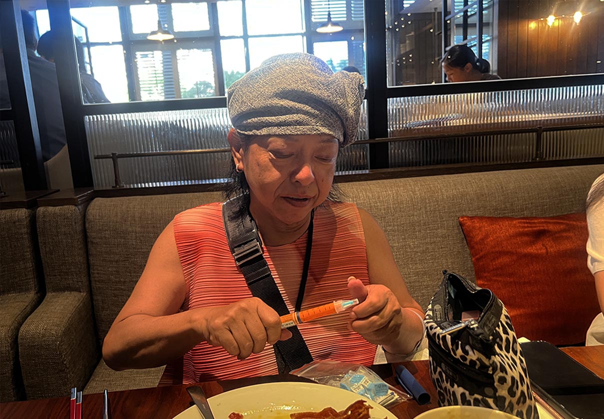 可是,命運並沒有放過她,在極度忙碌的工作裡,她的健康發生了重大的危機;不僅成了糖尿病的患者,並且因為肝功能出問題,生命銜在一線間;但在因緣際會中,得到換肝的機會,幸運地在死神的手中脫逃。後來每次在多次餐敘的場合中,總見她在餐前若無其事拿起針頭往自己身體扎下,不禁對她佩服不已;她真是一位不折不扣的生命鬥士啊!