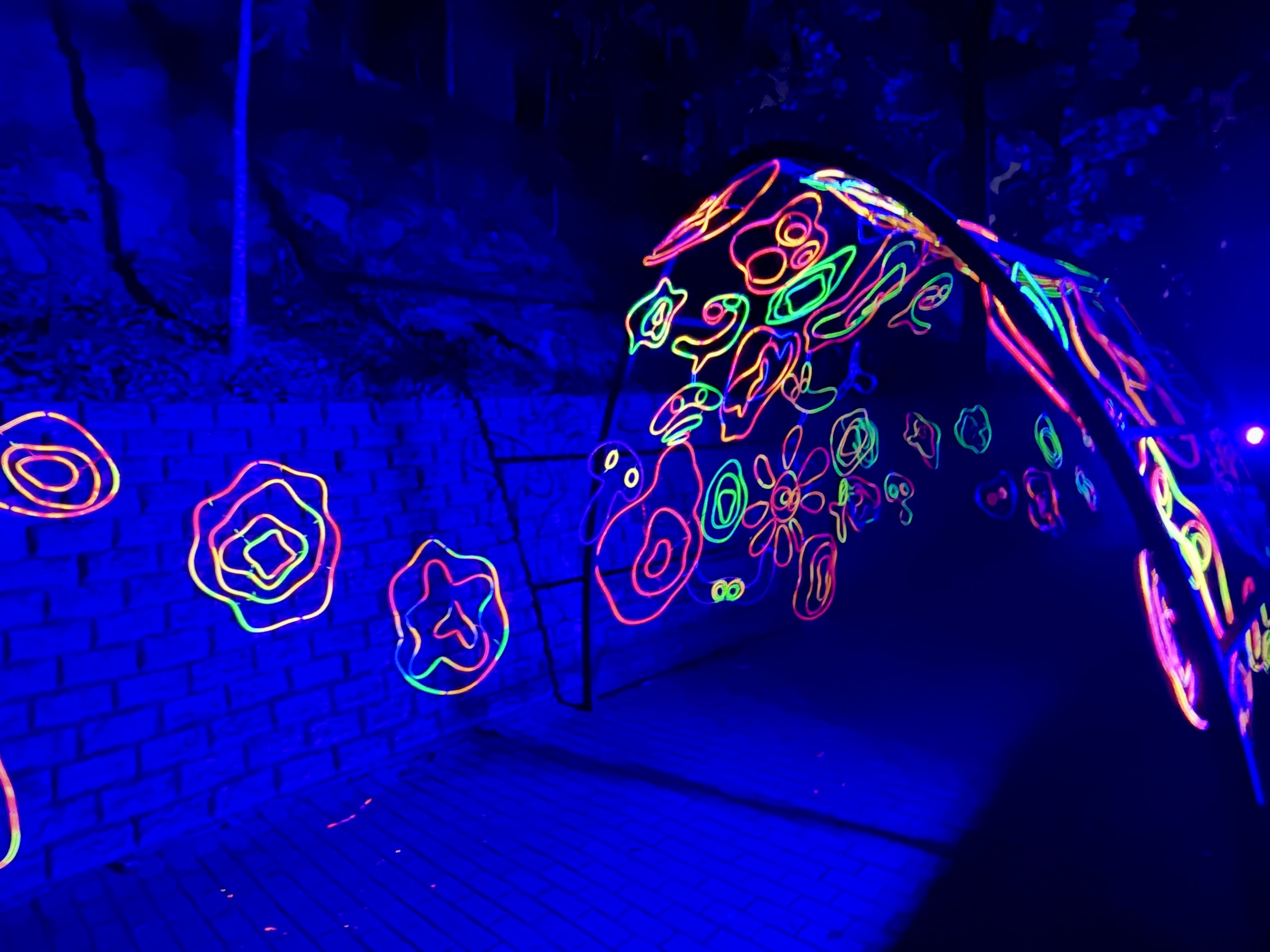 文化局表示,今年策展特別強調科技與自然的融合,讓光色在林間自然擴散、聲音如山林脈動般輕貼觀者,引導民眾在行走之間,逐步與環境產生連結。夜光步道亦全面升級,採用懸掛式光環降低光害,同時兼具夜間引導功能,營造層次分明且舒適宜人的夜間漫遊體驗。