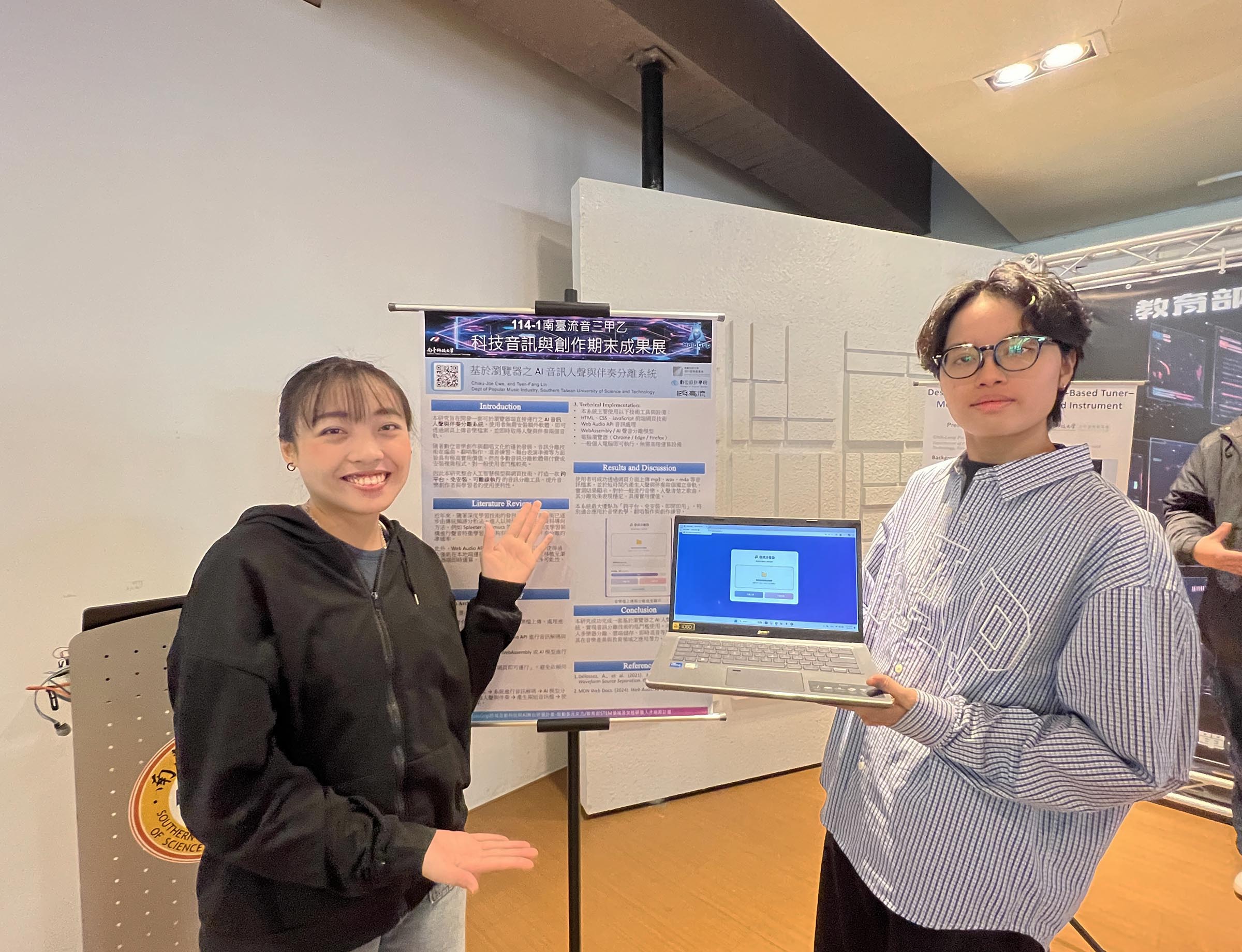 展演當天,學生所開發的音樂互動APP將開放觀眾現場掃碼體驗,舞台演出亦將呈現十首結合AI與跨域科技的原創歌曲。創作題材多元,從「以AI反思AI」的趣味對話,到探討性別平權與女性科技職涯的深層議題,充分展現新世代對科技、人文與社會議題的雙重關懷。