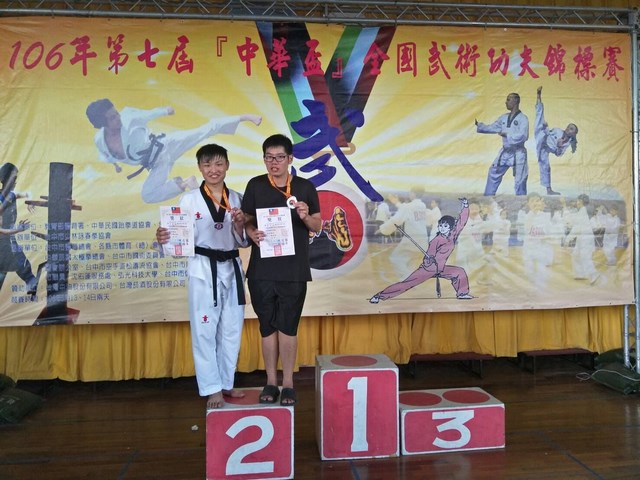 學武不止防身,更是對自身的修練,第七屆中華盃全國武術錦標賽在臺中市信義國小信義館開打,現場高手如雲,武術的力與美在拳腳功夫中流暢展現。崑山科大跆拳道社參與賽事,共榮獲2銀2銅佳績。中華盃競賽項目總共分為六個項目,包括詠春拳、太極拳、傳統武術套路、空手道、跆拳道及各式兵器,崑山科大跆拳道社參與的跆拳道賽事中的「競賽對打」與「品勢競賽」,前者為雙方互相攻擊護具與頭部,高分者勝,後者則是基本動作與攻擊動作編成的跆拳道套路,曝光度稍低。該校在「競賽對打」的高中社會男子黑帶組中,共有三個量級獲獎,休憩系三年級王建翔與曾守浚分別榮獲第三量級與第六量級的銀牌,電子系二年級鄭宇笙獲得第一量級銅牌,「品勢競賽」則由休憩系一年級孫國章拿下銅牌。王建翔表示,跆拳道中的「量級」是指依照參賽者體重劃分不同組別進行比賽,日前為參與臺大舉辦的全國大專盃,他從第三量級的體重降到第二量級,足足瘦了十多公斤,幾天後的中華盃又打回第三量級,身體還沒完全適應恢復的體重,無法抓準量級的力道與速度,是這次錯失金牌的主因,但能夠獲得銀牌也非常開心,會再繼續努力。崑山科大跆拳道社在該場賽事榮獲2銀2銅好成績,累計的數也拿下黑帶男子組團體亞軍的殊榮,跆拳道比賽不止鬥力更要鬥智,藉由參加比賽,選手可以給自己多一個展現實力的舞臺,了解運動員背後的艱辛,也促進社團發展與和諧。