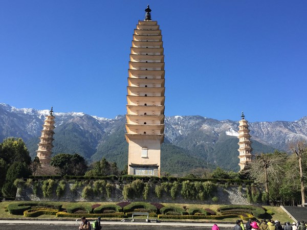 崇聖寺三塔位於大理古城北1.5公裡處,東對洱海,西靠蒼山,寺中立塔,故塔以寺名。崇聖寺的壯觀廟宇在鹹同年間燒毀,只有三塔完好地保留下來。