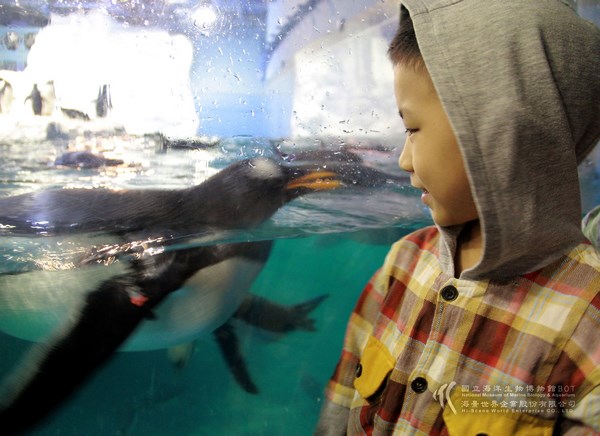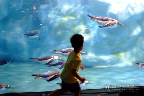 上圖為企鵝與孩子一同歡樂奔跑--歡樂兒童節的好去處-海生館