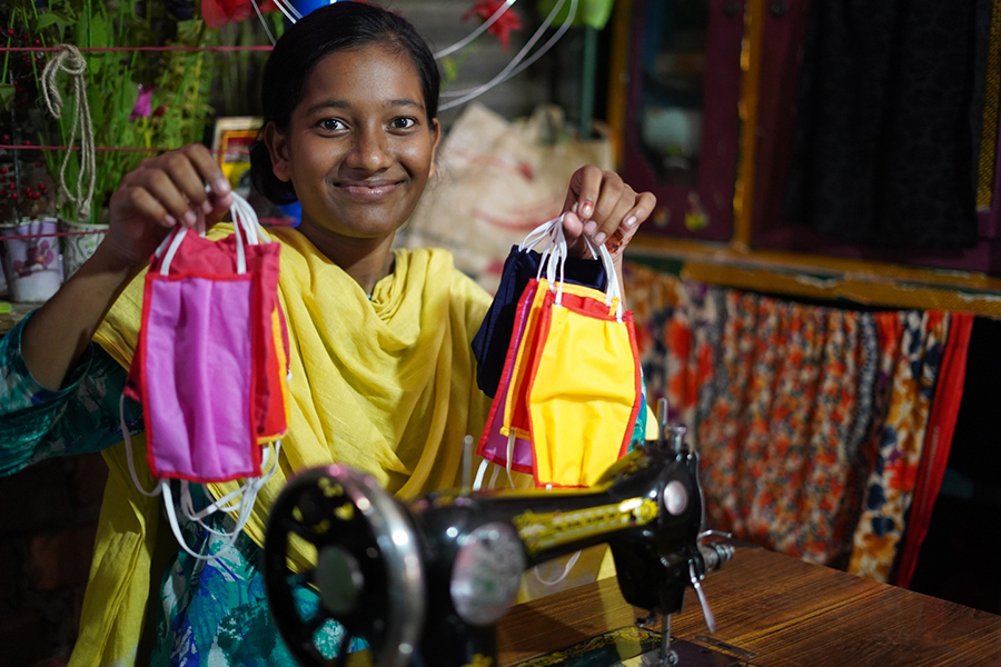 為讓大眾意識女童權利的觀念,保護像阿琦這樣的孩子,世界展望會在全球脆弱地區的貧困社區持續推廣女童權利,支持女孩們受教育、培力生活技能等,讓弱勢女童脫離困境,擁有發展自我的機會。其中,這份資助計畫讓阿琦的生命產生轉變,讓她得以接受世界展望會社工員的協助,離開險惡的工作環境。雖然之後當她試圖回到學校上課,多數學校因為她的年紀已超過入學門檻而拒絕她,世界展望會還是不放棄地透過自有的培力工作坊,支持她進入縫紉技能教育課程,學習職業技能以培育她未來的自立能力。如今,阿琦已經展開自己的縫紉事業,除了接裁縫訂製的訂單外,還專心研發自己的縫紉產品,賺取收入減緩家庭經濟負擔。甚至,在新冠肺炎爆發期間,她發現許多窮人無力購買昂貴的口罩,便開始製作口罩,以低價格售出或免費贈送給弱勢,試圖用一己之力幫助更多的家庭與整個社區,成為疫情底下的幕後英雄。