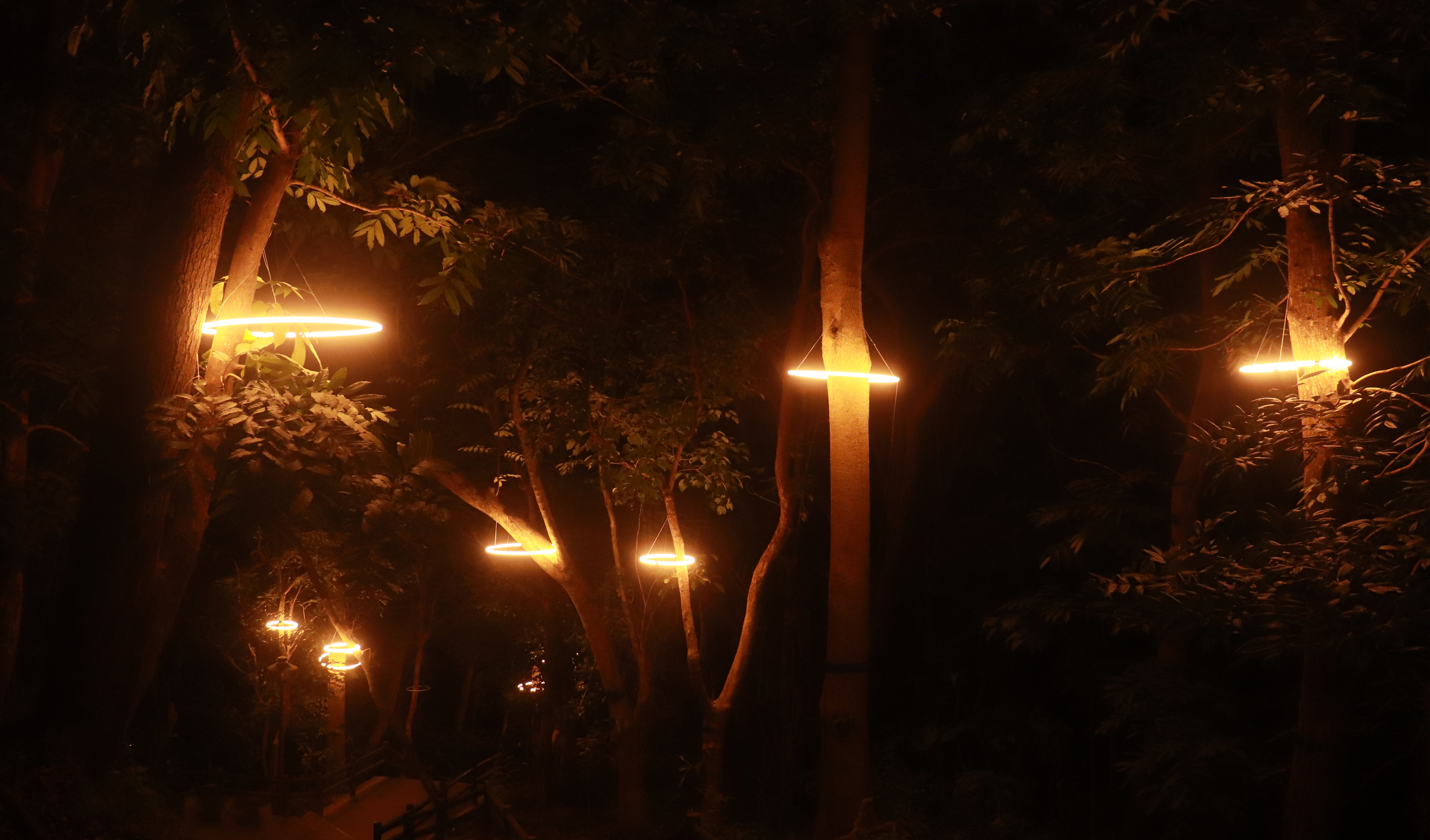 文化局表示,今年策展特別強調科技與自然的融合,讓光色在林間自然擴散、聲音如山林脈動般輕貼觀者,引導民眾在行走之間,逐步與環境產生連結。夜光步道亦全面升級,採用懸掛式光環降低光害,同時兼具夜間引導功能,營造層次分明且舒適宜人的夜間漫遊體驗。