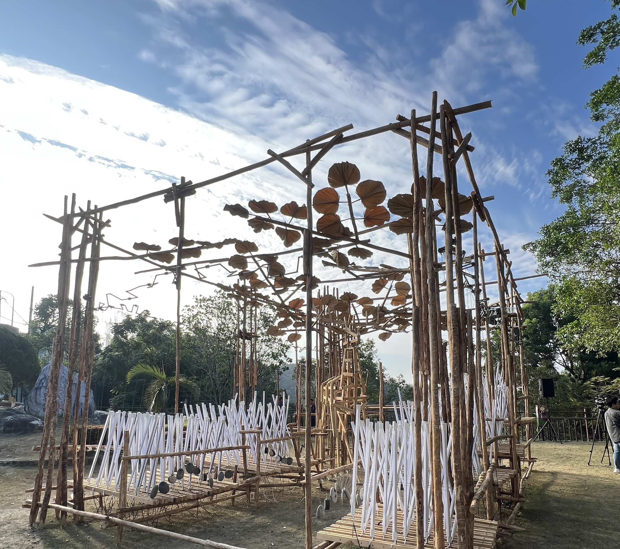 在藝術家陣容方面,本屆邀請多位國際藝術家進駐龍崎進行駐地創作,深化藝術與土地及社區的交流。日本沖繩藝術家町田隼人以南島色彩融合地方元素,創作作品《旺旺花花》,並延伸應用於展區燈箱與限定商品;印尼藝術家 Aji Prasetyo 則透過駐村期間與居民互動、蒐集生活物件,完成金屬機械裝置《動能變異》,引導觀眾反思環境污染與生態變異議題。